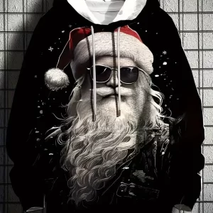 Men's Casual Christmas Hoodie Santa Claus Print Pullover Sweatshirt with Micro Elasticity Regular Fit Made Polyester Knit Fabric