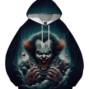 Men's Casual 3D Digital Print Horror Graphic Hoodies Oversized Pullover Sweatshirt Terry Fabric High Quality Plus Size