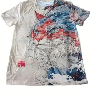 New Trend Men's Casual Wear tshirt Crew Neck Short Sleeve T-Shirt Cartoon cat Print Soft Polyester Blend Regular Fit Knitted