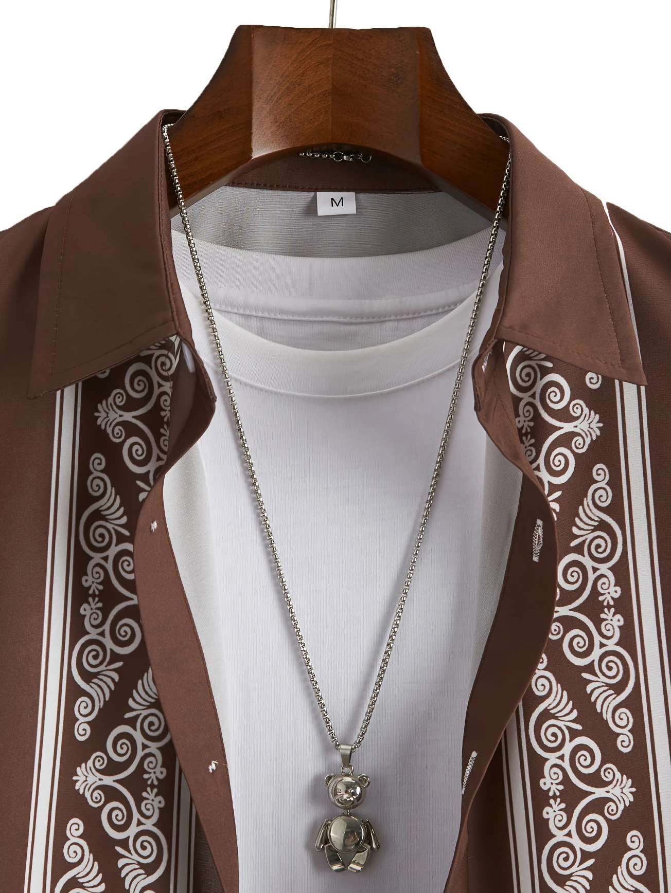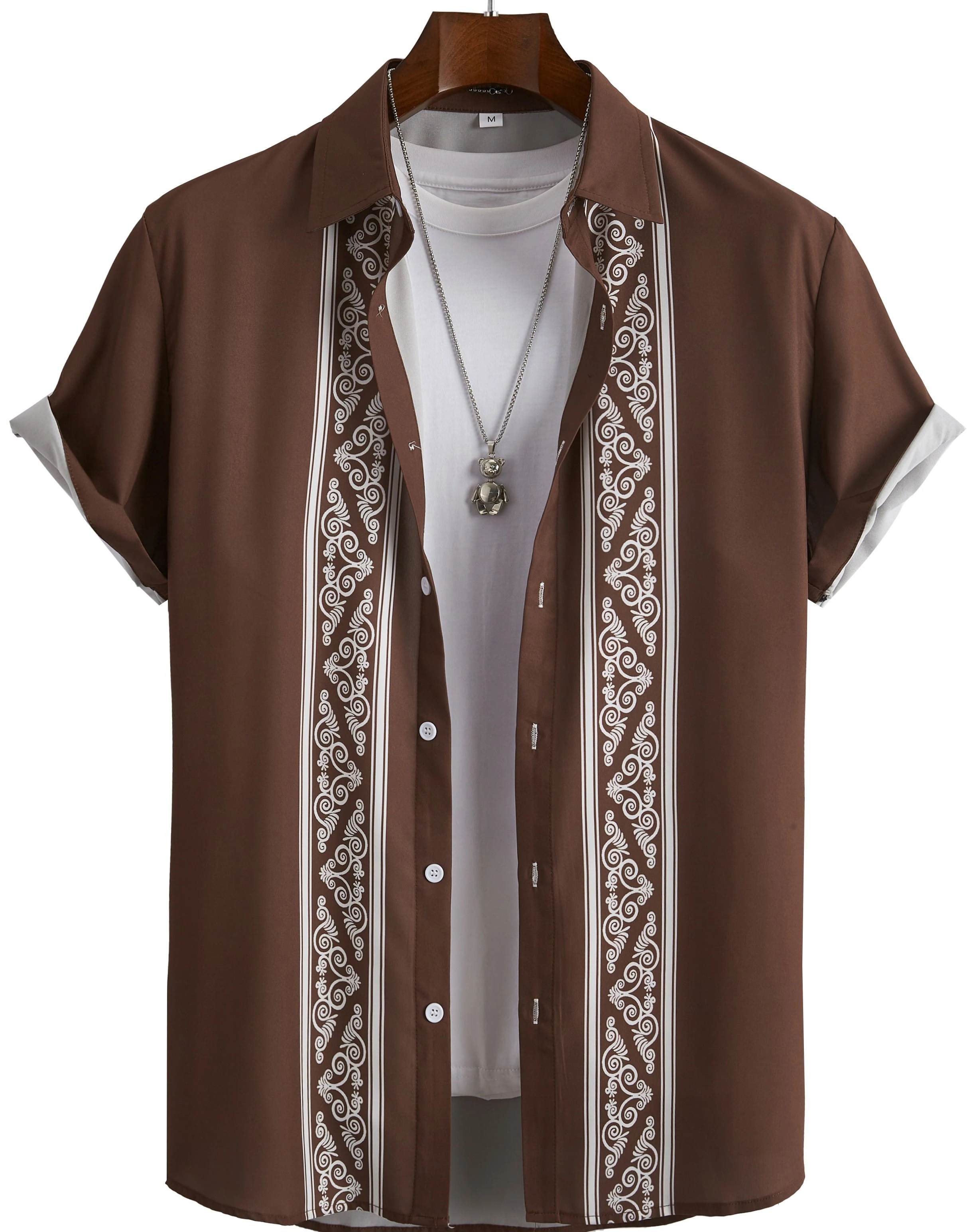 3-D Printed Button Down Casual Shirt Anti-Wrinkle Brown Short Anti-Pilling Anti-Shrink Service