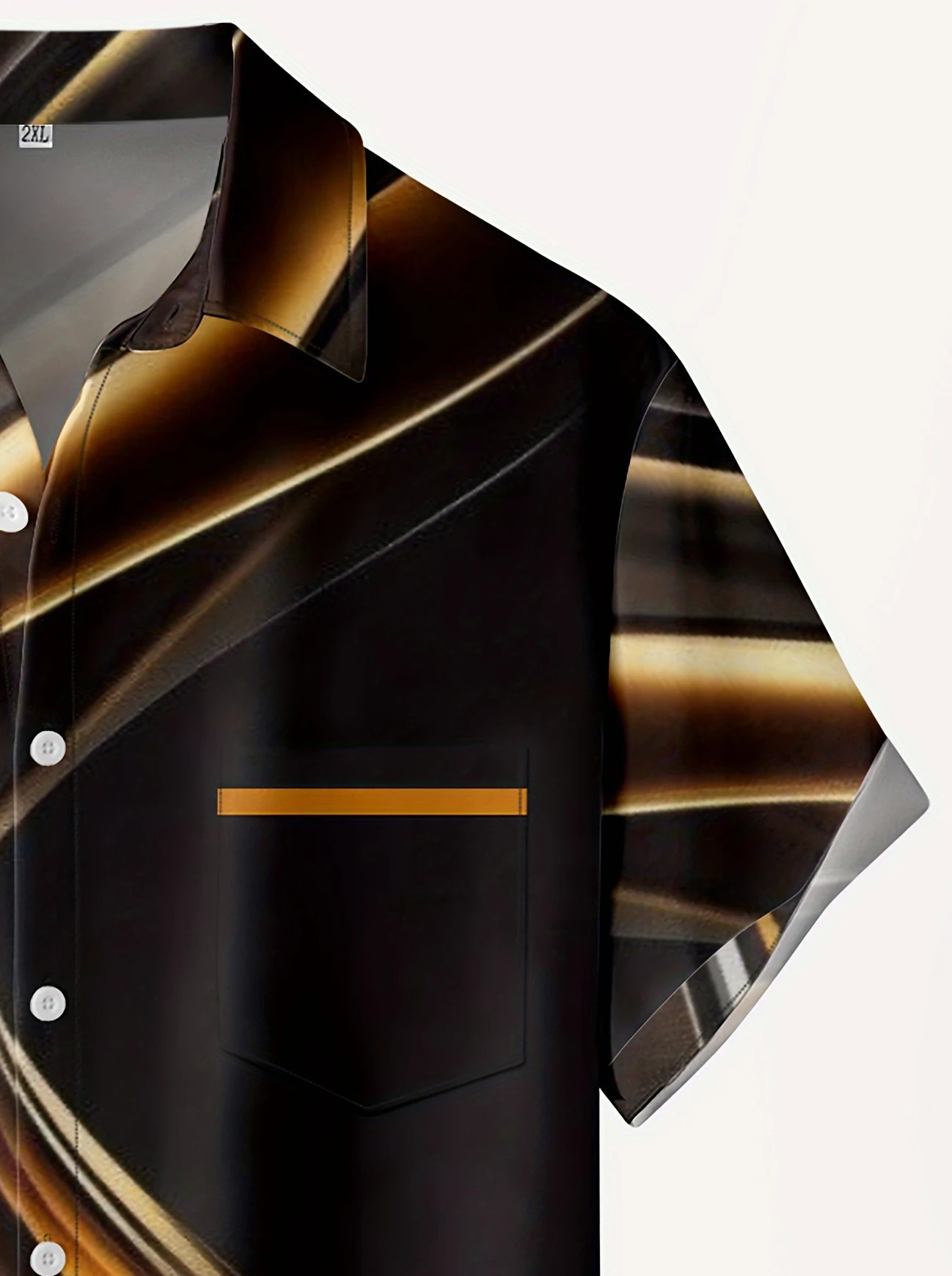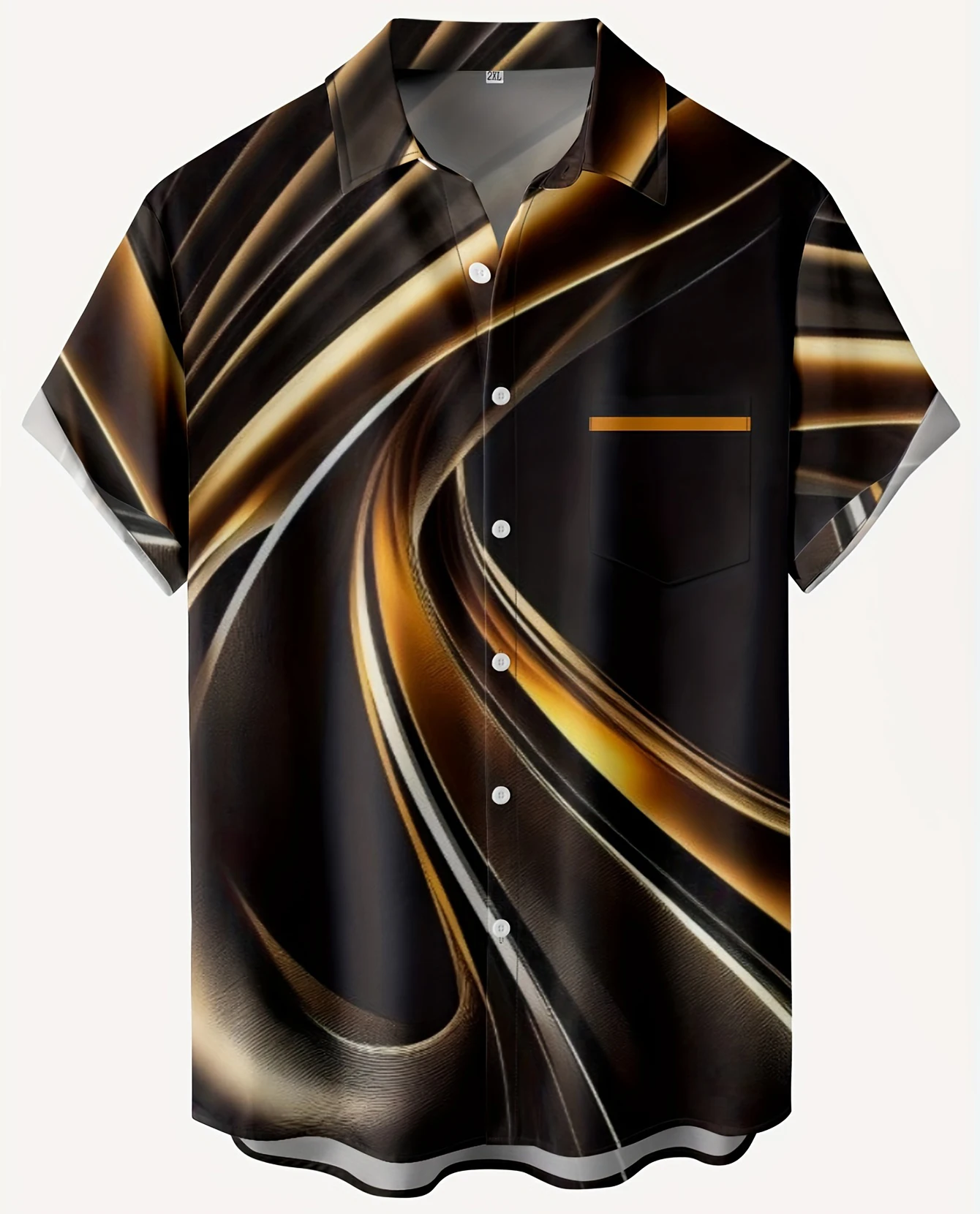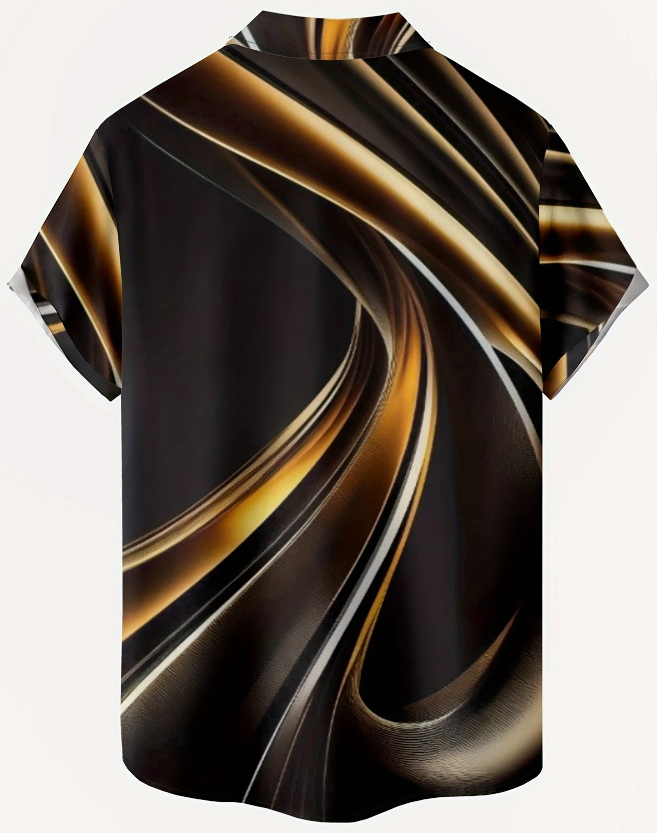 3-D Printed Knit V-Neck Men’s Button Shirt Soft Anti-Wrinkle Anti-Pilling fabric Summer Outdoor Short Sleeve