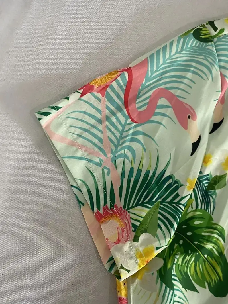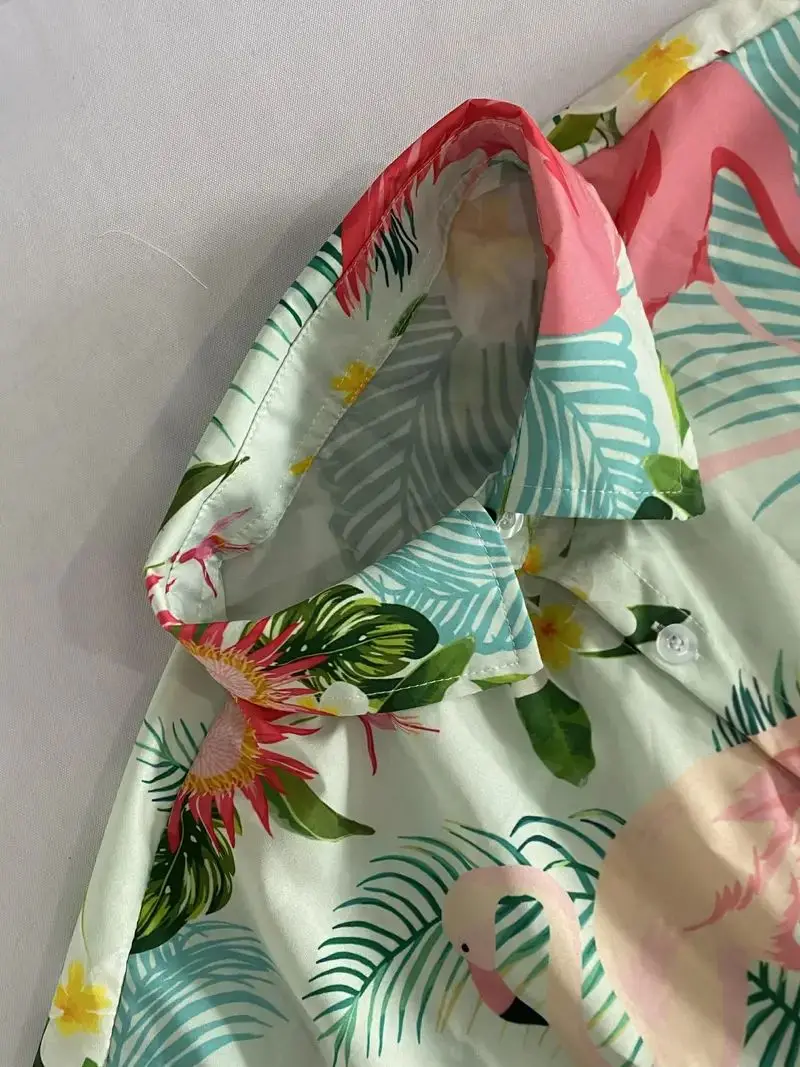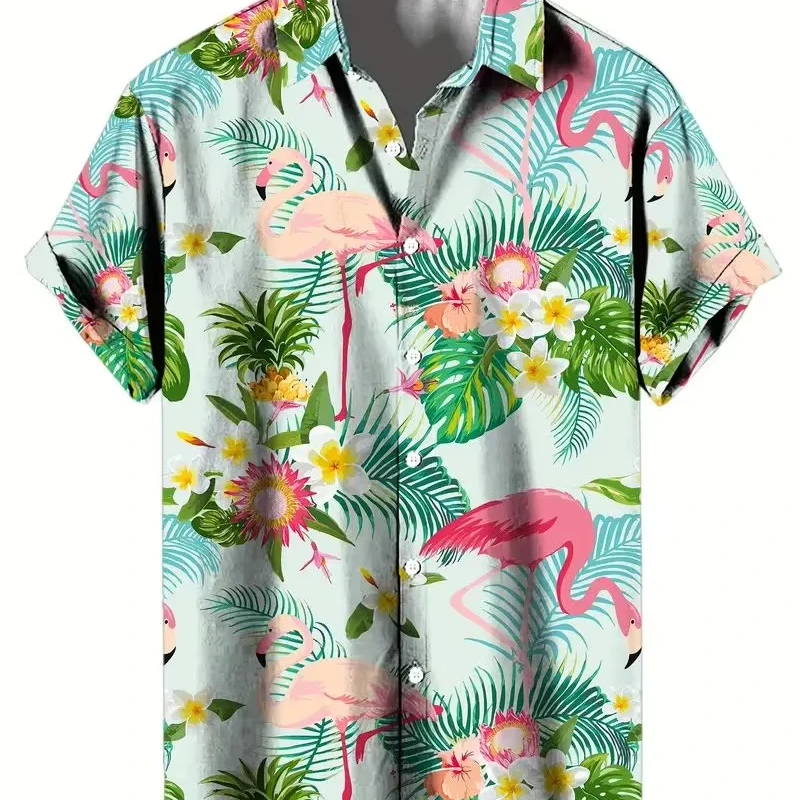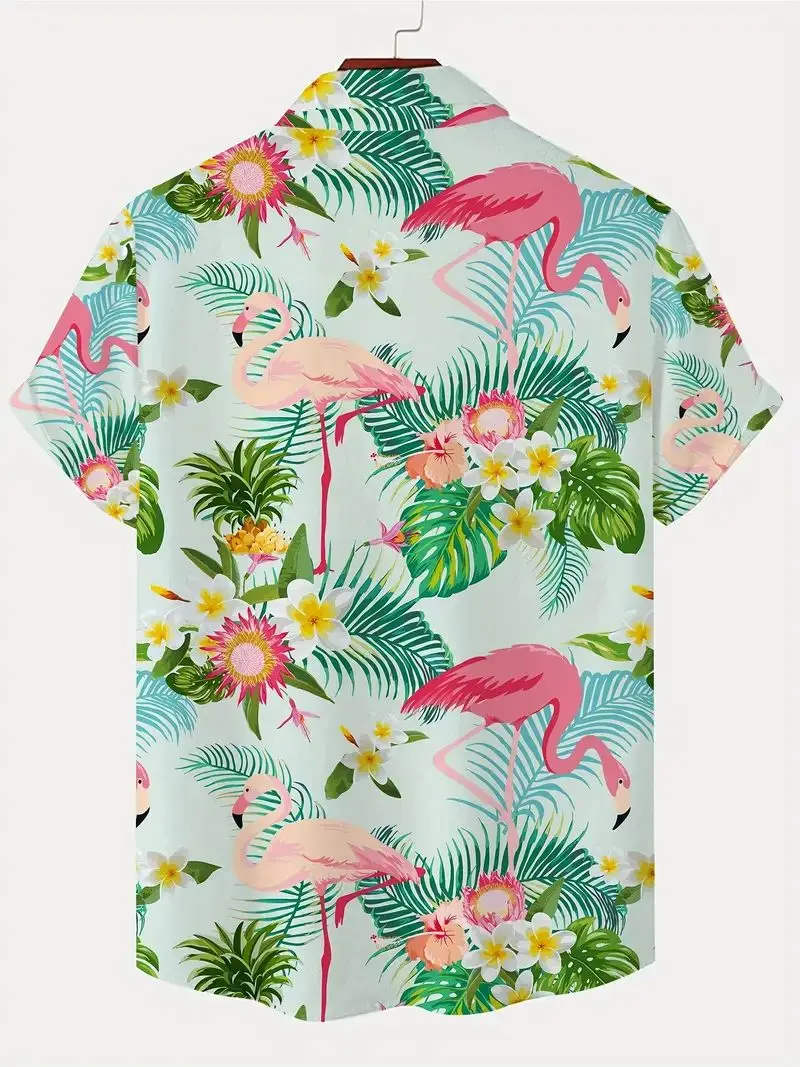 Bold flamingo Print Plus Size Men’s Shirt Stylish Casual Lapel Button up Short Sleeve Breathable Sustainable Outdoor Adventures