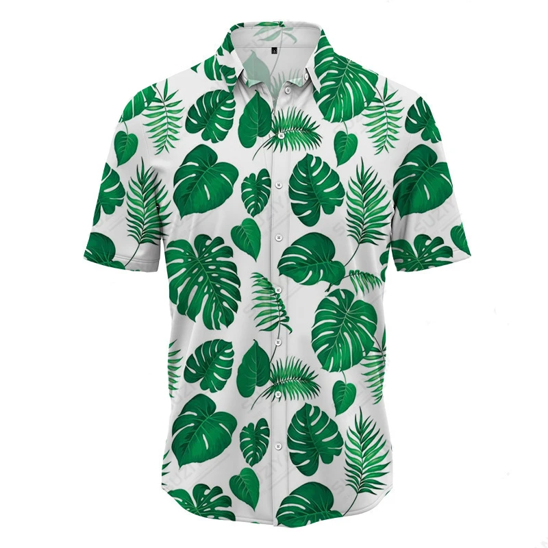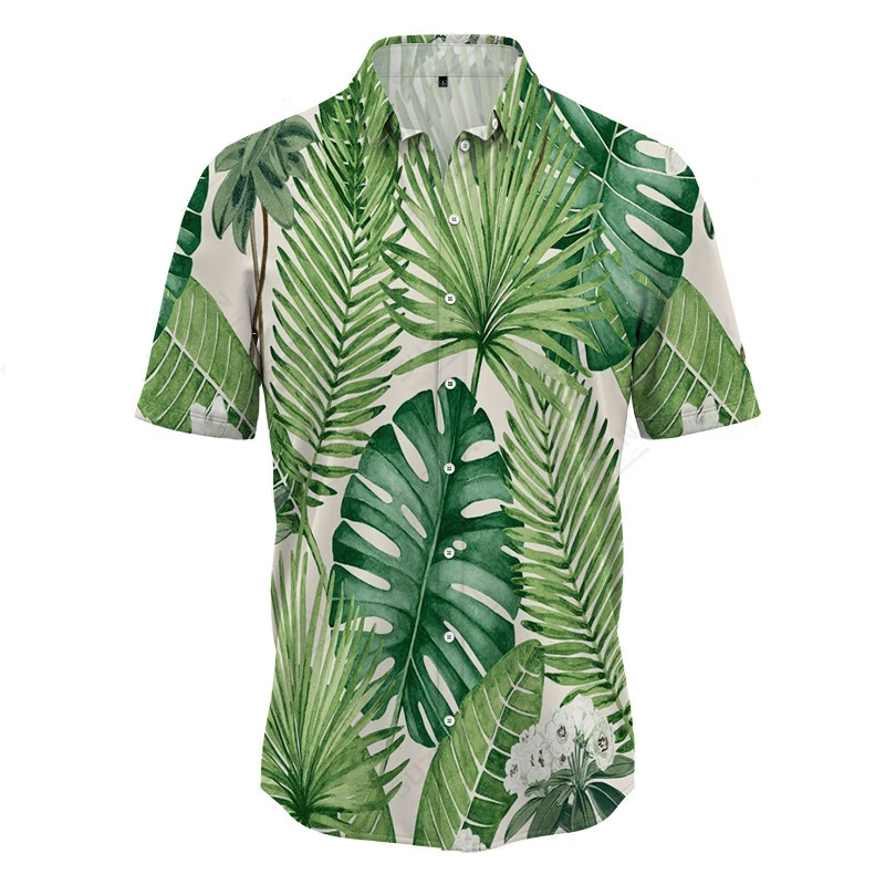 Button-Down Casual Shirt for Men High Collar Breathable XL Size Hawaii Graphic Print