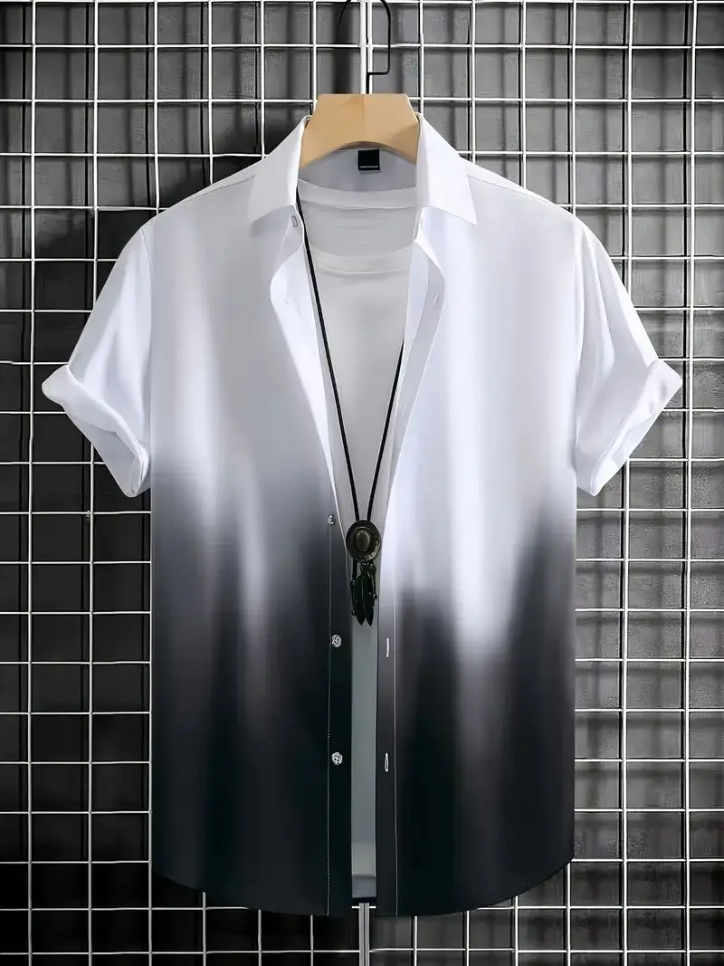 Hawaiian Men’S Shirt 3d Gradient Printing Loose Oversized Shirts And Blouses High-Quality Men’S Clothing Beach Party Sweatshirts