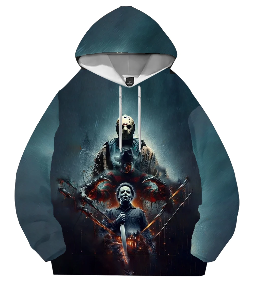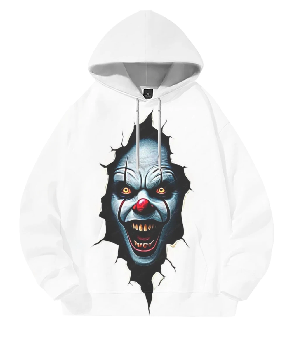Men’s Casual 3D Digital Print Horror Graphic Hoodies Oversized Pullover Sweatshirt Terry Fabric High Quality Plus Size