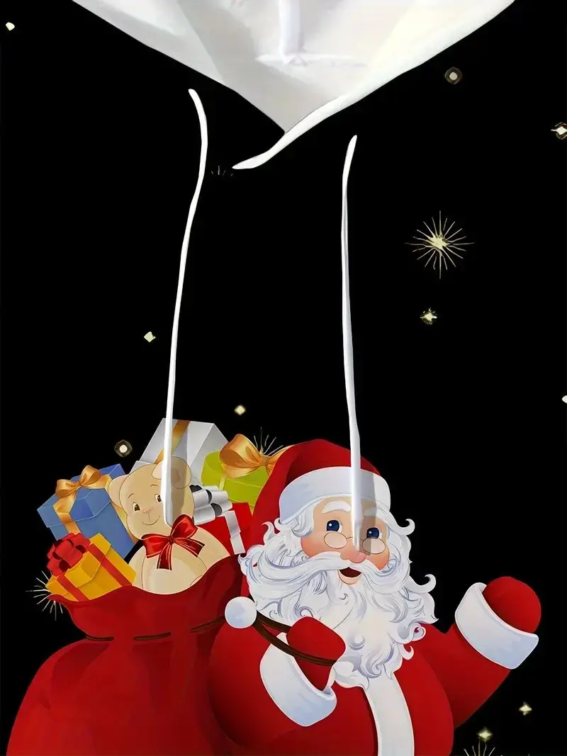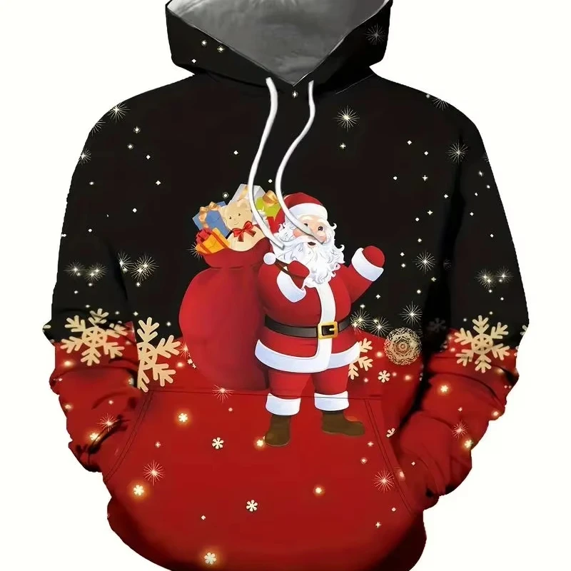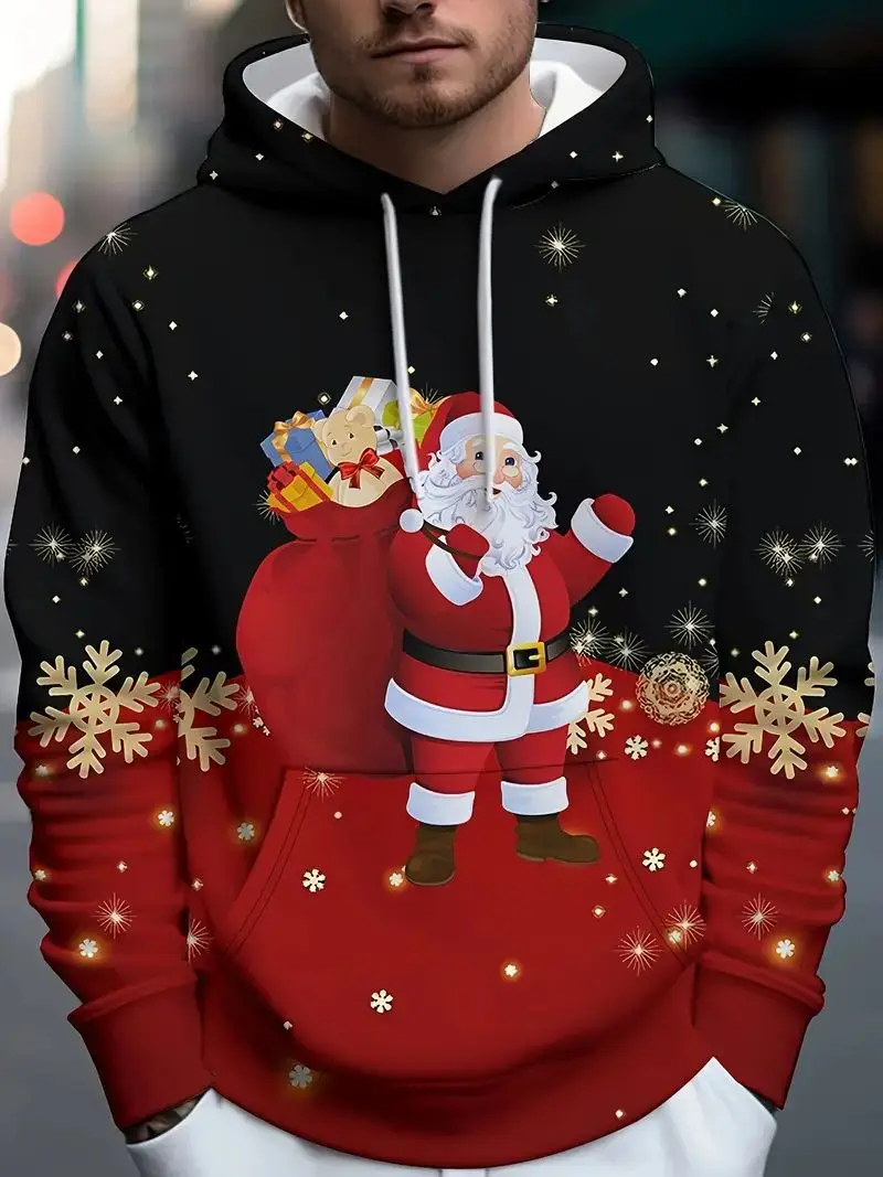 Men’s Casual Christmas Hoodie Santa Claus Print Pullover Sweatshirt with Micro Elasticity Regular Fit Made Polyester Knit Fabric