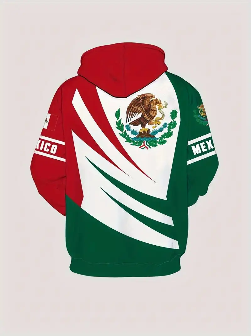 Men’s Casual Long Sleeve Hooded Polyester Fleece Machine Washable Gym Outdoor Activities Jacket national Flag Print