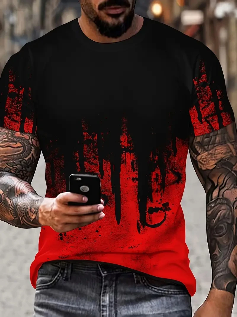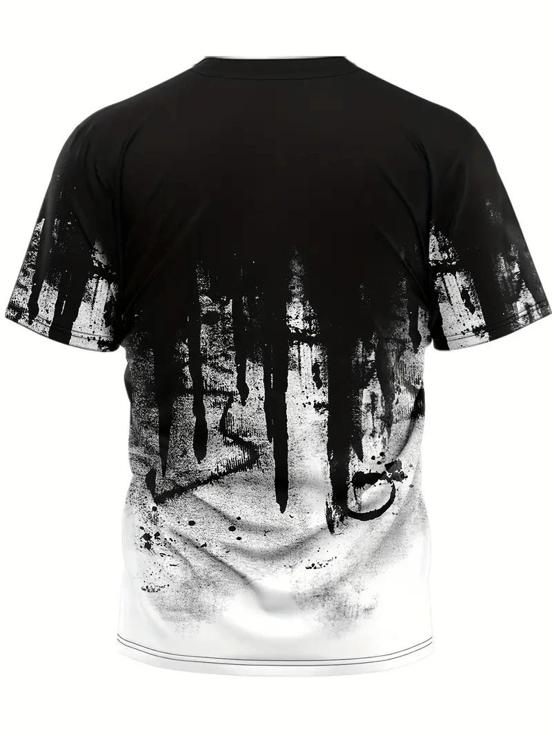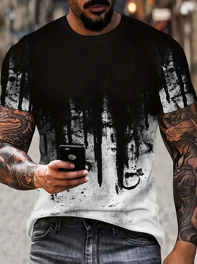 Men’s Summer Casual Crocheted T-Shirt Short Sleeved 3D Printing Doodle Photo Print Design 120 Grams Fabric Weight