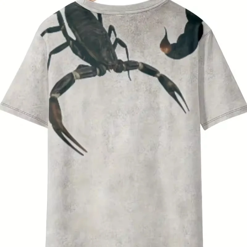 Men’s Summer Casual T-Shirts Hot Sale 3D Printing Design Scorpion Photo Crocheted Pattern Weaving 120 Grams Fabric Weight