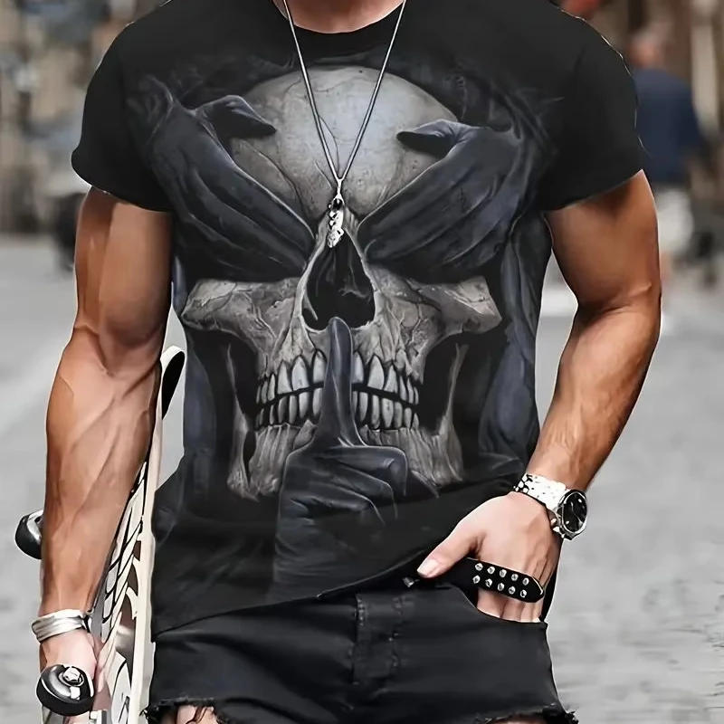 Men’s Summer Crew Neck Horror T-Shirt Comfortable Soft Slight Stretch Polyester Skeleton 3D Pattern Graphic All Print Regular