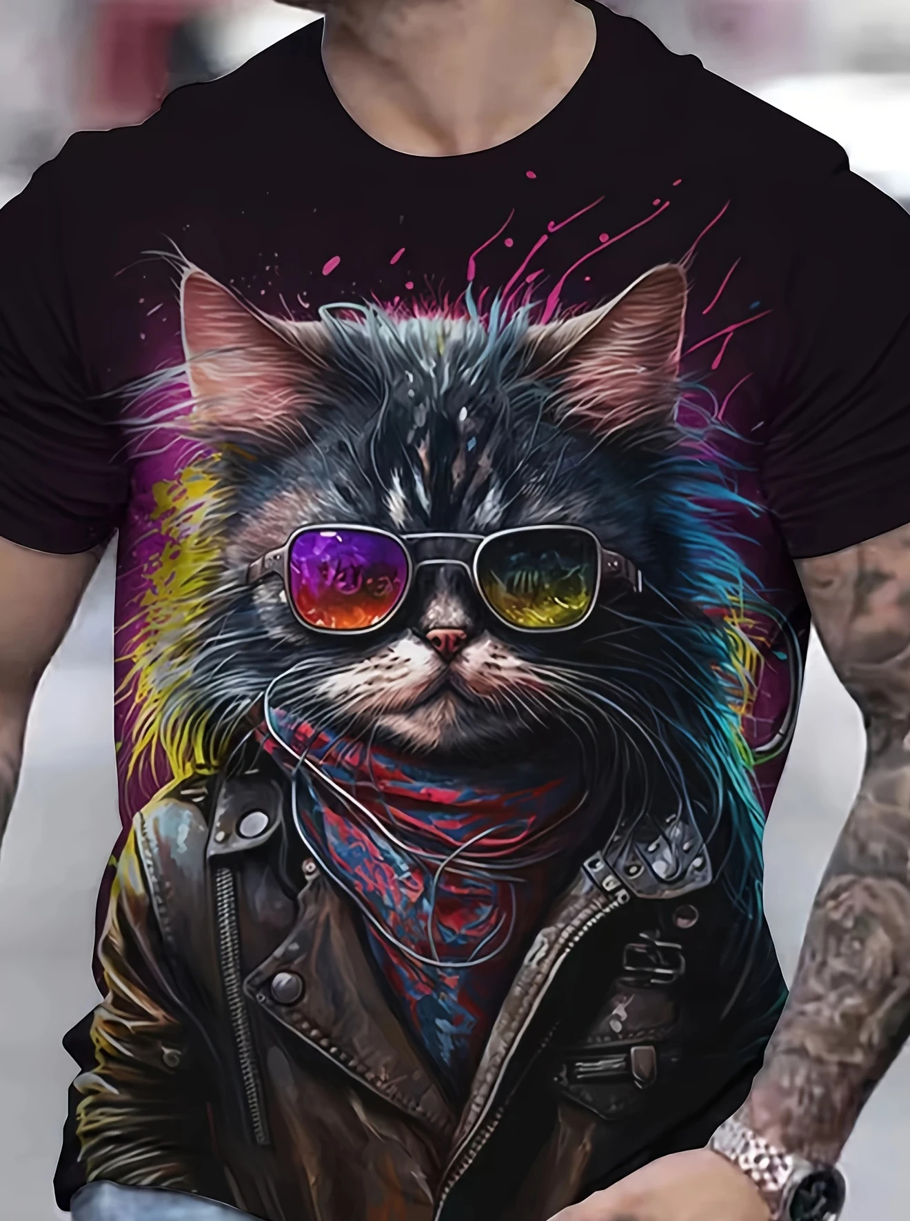 Men’s T Shirts 3 D Print Cool Cat Graphic Crew Neck Short Sleeve Casual T- Shirt For Men Outdoor Clothes