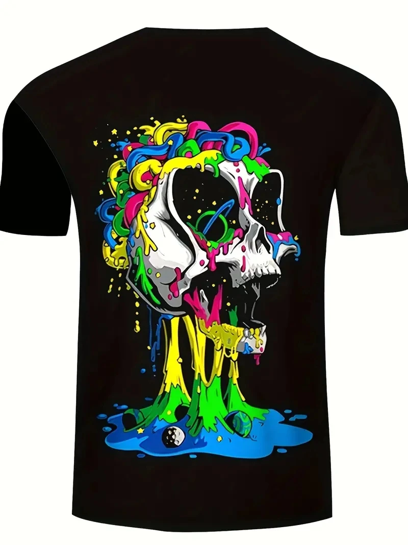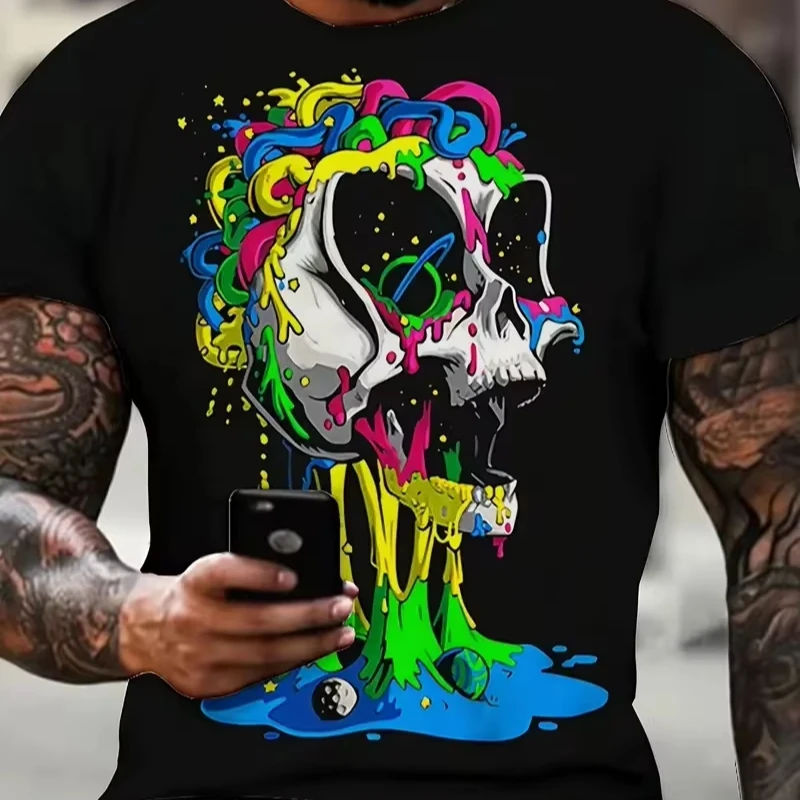 Men’s V-Neck T-Shirt Skull Graphic Print tshirts Halloween Short Sleeve 3D printed Summer Tops Knitted Clothing