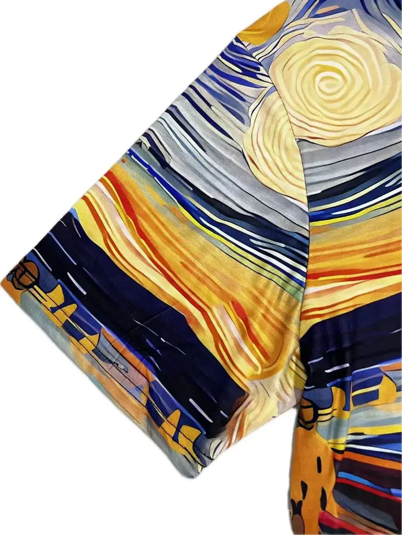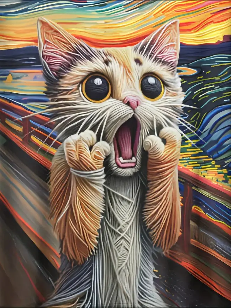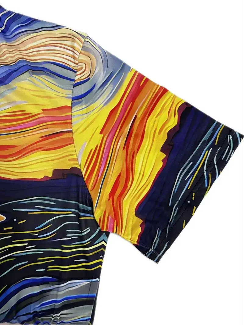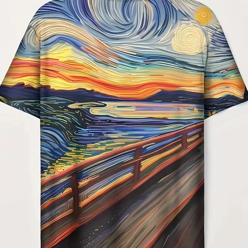 Mens Vibrant Screaming Cat Graphic Crew Neck Short Sleeve Slight Stretch Polyester Fabric Casual Stylish Summer Daily T-shirt