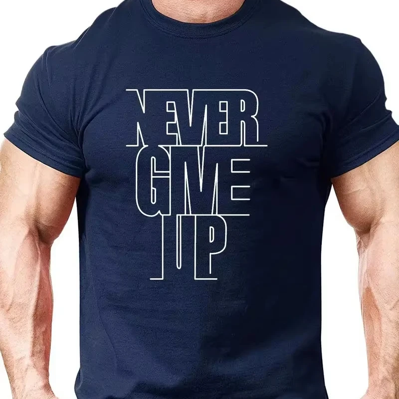 Never Give up letters Printed Men’s Casual T-Shirt Plus Size digital printed V-Neck Summer Breathable Knitted Fabric Clothing