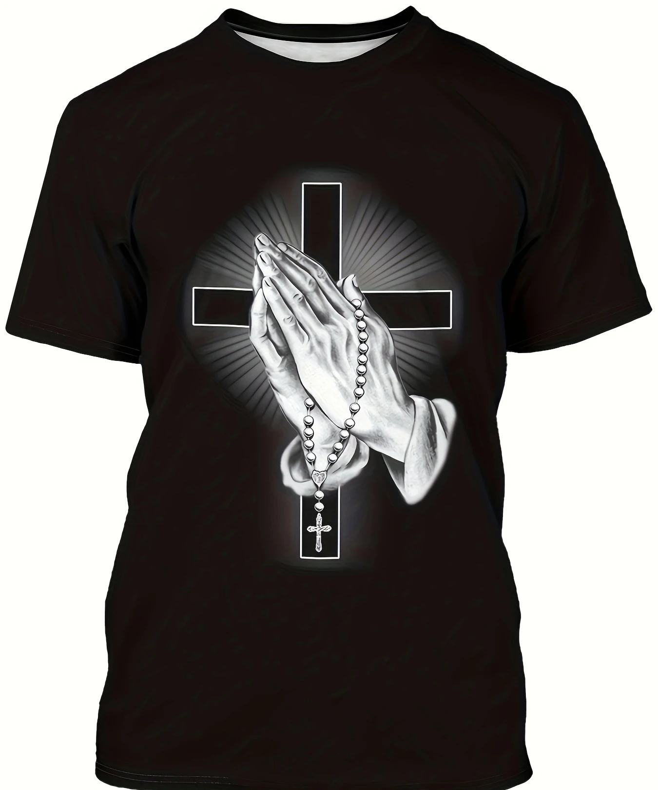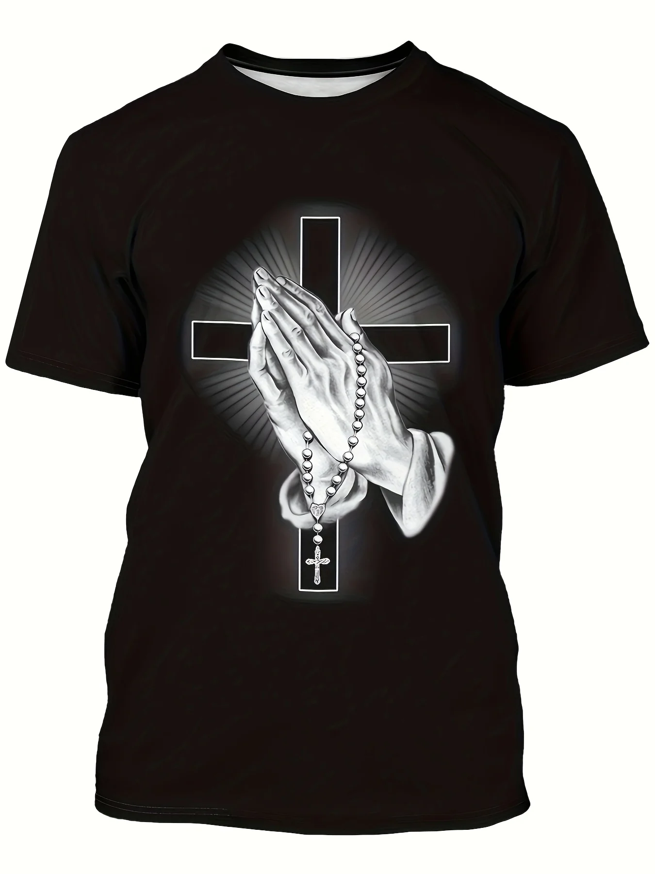 New Arrival Men’s T Shirts Prey Hands Graphic 3 D Print Crew Neck Short Sleeve Casual T- Shirt For Men Clothes
